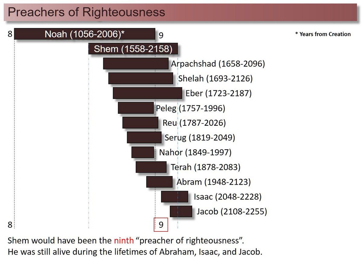 Noah, a "preacher of righteousness," was eighth (2 Peter 2:5) in the line of succession from Adam. It is fascinating to note that "eight" in Semitic symbolism means "new" (e.g., the eighth day begins a new week). Noah was a new preacher in a new world after the Flood washed away the old.